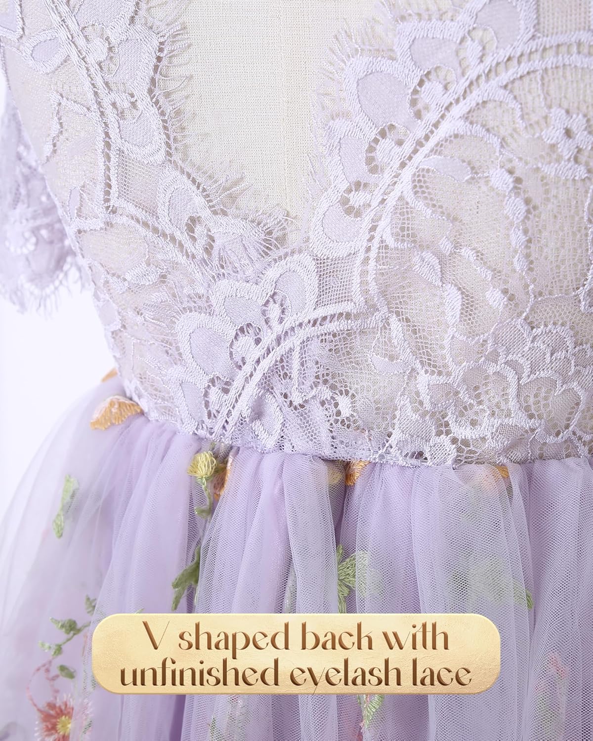 Flower Girl Lace Back V-Neck Dress Full-Length Floral Embroidered Toddler Tutu Tulle Dresses for Girls