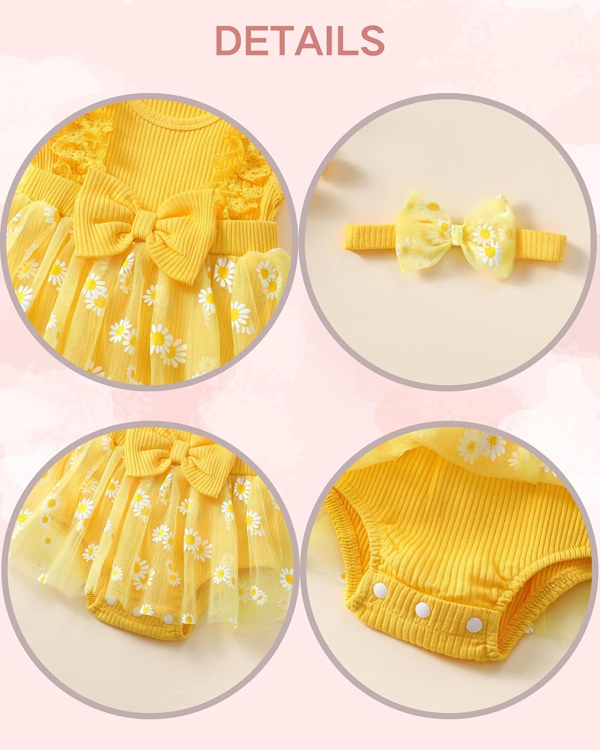 Baby Girl Romper Dress Suitable for Wedding、Parties、Coming Home Outfits
