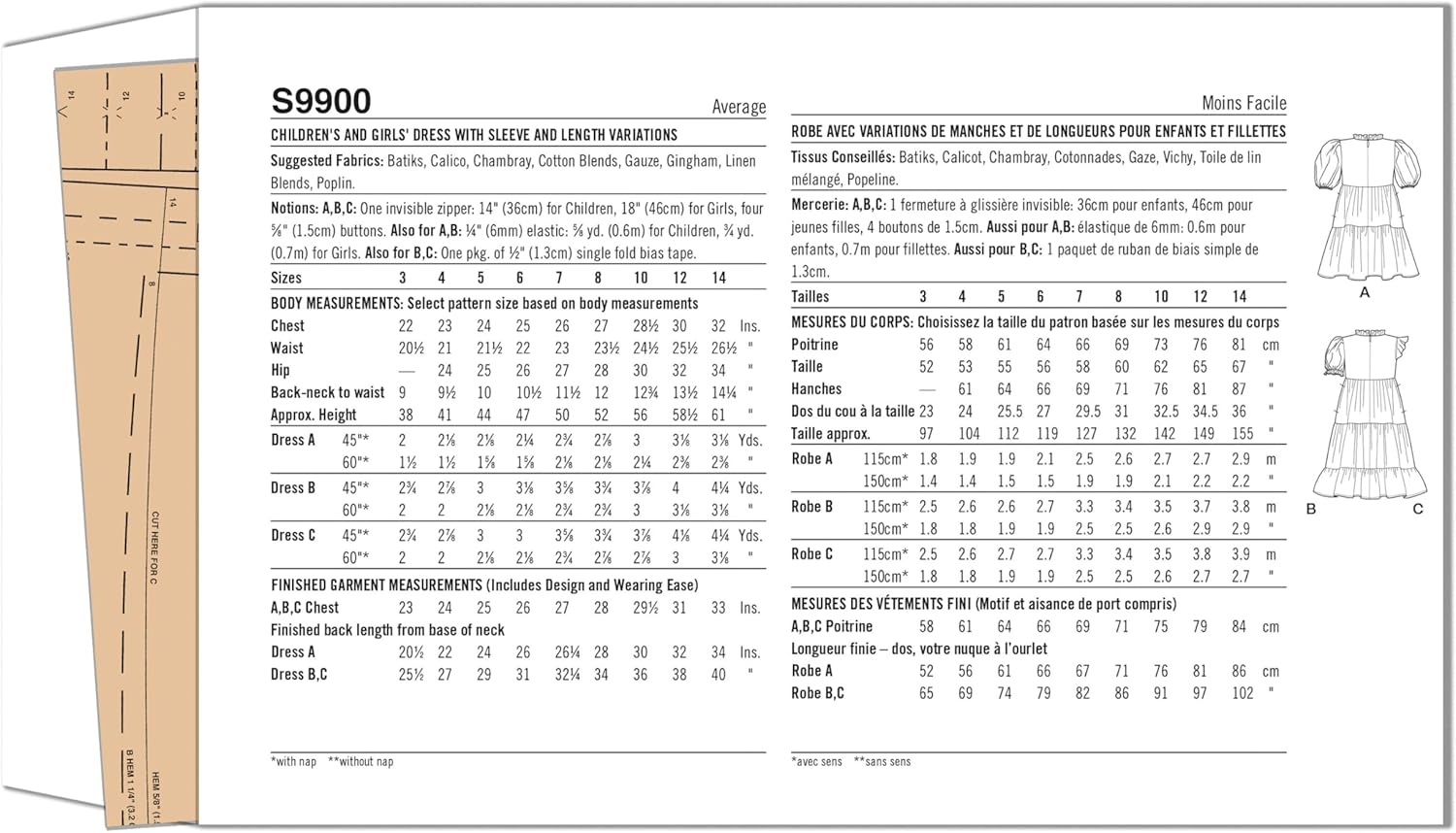 Simplicity Children’s and Girls’ Tiered Dress Sewing Pattern Packet, Design Code S9900, Sizes 7-8-10-12-14