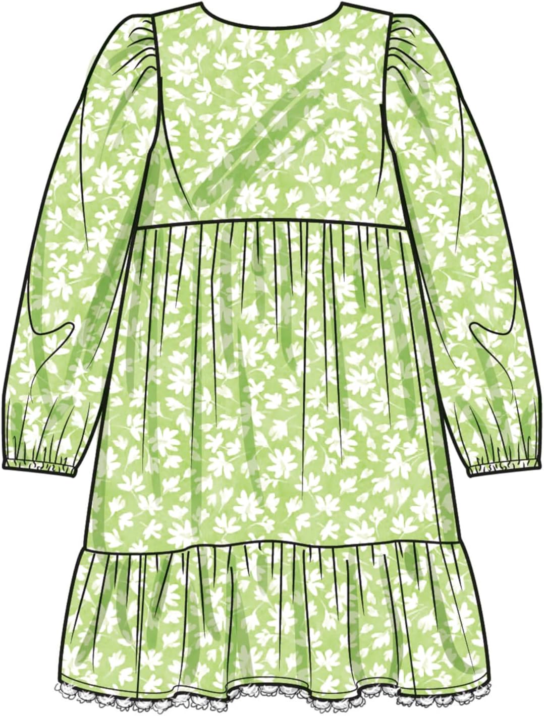 From show stopping evening dresses to cute and casual day-to-day pieces for children, Simplicity offers a huge catalog of patterns for your warddrobe, kitchen, and home. Relaxed fit tiered dress for children and girls sized 3 to 14 has lace trim, invisible zipper closure and sleeve variations. Views A and B have shoulder cutout with bow detail. View C dress has long puffed and gathered sleeves. View D is a sleeveless dress. Simplicity patterns kits come with sewing templates, sizing information, pattern pieces, instructions, and information on how to select fabric and trims with recommendations. Patterns can be made to fit sizes 7-8-10-12-14. Fabric suggestions include: batiks, calico, chambray, cotton blends, flannel, gauze, gingham, linen blends, poplin, seersucker, shirtings. Design Code S9933. Proudly designed and manufactured in the United States.